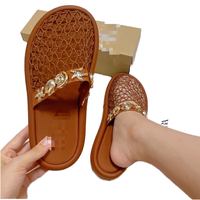 รองเท้าแตะสำหรับใส่ในบ้านระดับไฮเอนด์สไตล์ยุโรปอเมริกันสินค้าขายดีใน2025รองเท้าแตะแบบเดี่ยวสไตล์คลาสสิกอุปกรณ์สำหรับตกแต่งหัวเข็มขัด